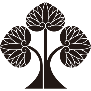 左離れ立ち葵紋は、1本の木のように3枚の葉を付けた葵を立たせ、左の葉を軸から少し離して描く。