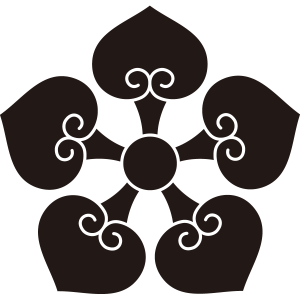 五つ葵紋は、5枚の『裏葵』を車状に配して描く。