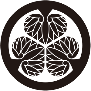 徳川葵紋は、3枚の葵の葉を頭合わせに並べて、通常の太さの丸で囲う。江戸幕府の将軍家、徳川家の家紋。日光市日光東照宮の神紋、東京増上寺の寺紋、京都市清凉寺の寺紋。
