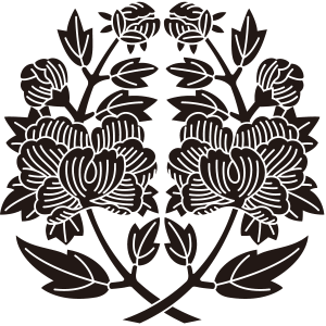 | 牡丹紋とは、キンポウゲ科の落葉灌木である牡丹の花を文様化した家紋。奈良時代に薬用、観賞用のため中国から伝わったものだが、中国では花の中の王「百花王」といわれ、富貴の象徴とされた。古くから衣服の文様としても用いられており、歴史的に著名な家紋だが、現在では使用家は少ない。摂関家である近衛家や鷹司家の家紋として知られており、そのつながりから伊達や津軽といった大名家でも用いられている。 |