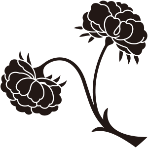 | 牡丹紋とは、キンポウゲ科の落葉灌木である牡丹の花を文様化した家紋。奈良時代に薬用、観賞用のため中国から伝わったものだが、中国では花の中の王「百花王」といわれ、富貴の象徴とされた。古くから衣服の文様としても用いられており、歴史的に著名な家紋だが、現在では使用家は少ない。摂関家である近衛家や鷹司家の家紋として知られており、そのつながりから伊達や津軽といった大名家でも用いられている。 |