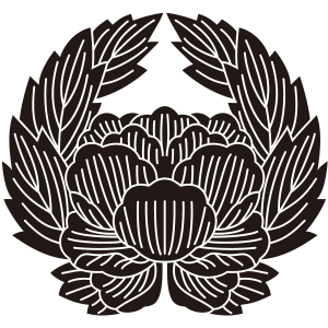 | 牡丹紋とは、キンポウゲ科の落葉灌木である牡丹の花を文様化した家紋。奈良時代に薬用、観賞用のため中国から伝わったものだが、中国では花の中の王「百花王」といわれ、富貴の象徴とされた。古くから衣服の文様としても用いられており、歴史的に著名な家紋だが、現在では使用家は少ない。摂関家である近衛家や鷹司家の家紋として知られており、そのつながりから伊達や津軽といった大名家でも用いられている。 |