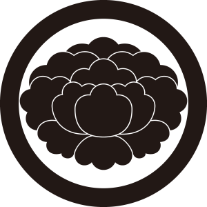 | 牡丹紋とは、キンポウゲ科の落葉灌木である牡丹の花を文様化した家紋。奈良時代に薬用、観賞用のため中国から伝わったものだが、中国では花の中の王「百花王」といわれ、富貴の象徴とされた。古くから衣服の文様としても用いられており、歴史的に著名な家紋だが、現在では使用家は少ない。摂関家である近衛家や鷹司家の家紋として知られており、そのつながりから伊達や津軽といった大名家でも用いられている。 |