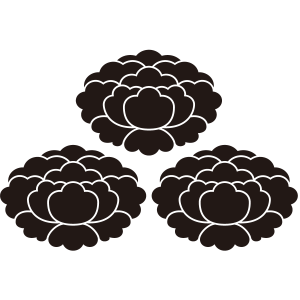 | 牡丹紋とは、キンポウゲ科の落葉灌木である牡丹の花を文様化した家紋。奈良時代に薬用、観賞用のため中国から伝わったものだが、中国では花の中の王「百花王」といわれ、富貴の象徴とされた。古くから衣服の文様としても用いられており、歴史的に著名な家紋だが、現在では使用家は少ない。摂関家である近衛家や鷹司家の家紋として知られており、そのつながりから伊達や津軽といった大名家でも用いられている。 |