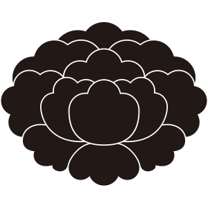 | 牡丹紋とは、キンポウゲ科の落葉灌木である牡丹の花を文様化した家紋。奈良時代に薬用、観賞用のため中国から伝わったものだが、中国では花の中の王「百花王」といわれ、富貴の象徴とされた。古くから衣服の文様としても用いられており、歴史的に著名な家紋だが、現在では使用家は少ない。摂関家である近衛家や鷹司家の家紋として知られており、そのつながりから伊達や津軽といった大名家でも用いられている。 |