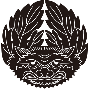 獅子牡丹紋は、獅子の顔を下に据え、左右から葉を立ち上げ、『杏葉紋』に見立てて描く。獅子の顔が鬼にも見えることから『鬼牡丹』とも呼ばれる。