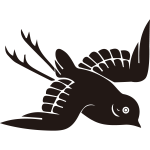 | 千鳥は海岸や河川に生息する小鳥の総称で、名前の由来は群れて飛ぶ姿からといわれる。文様としては平安時代から描かれており、『万葉集』『古今和歌集』などの和歌でも数多く詠まれた。俳句では冬の季語。家紋としては意外と新しく、文様から移行して使用されるようになったのは江戸時代から。尚美的な意味から用いられるようになった。 |