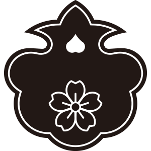 小菅打板紋は、猪目の釣り穴をつけ、盤面に桜の花を描く。旗本小菅氏の家紋の一つということで『小菅打板』と呼ばれる。