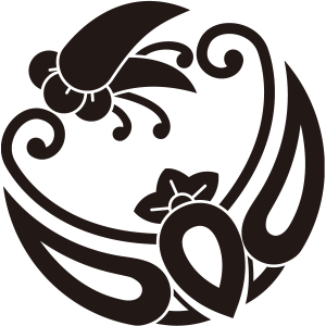 | 丁字紋は、植物の丁字の蕾をモチーフとした家紋。丁字はインドネシア原産で日本に伝来すると薬や香料として使用された。開花前の蕾を乾燥させたものが香辛料でいうところのグローブ。蕾が釘に似ていることから釘を意味する「丁字」から「丁子」という字となった。 |