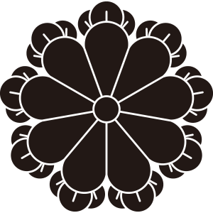 九つ丁子紋は、9本の『丁子紋』を尻合わせに寄せて、隣り合う丁子との間をピッタリくっつけて車状に描く。