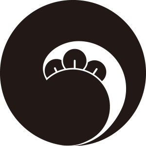 右一つ丁子巴紋は、1本の『丁子紋』の尻を長くして円形に丸め、右に流れる『一つ右巴』の形に描く。