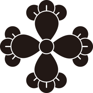 四つ丁子紋は、4本の『丁子紋』を尻合わせに寄せて、車状に描く。