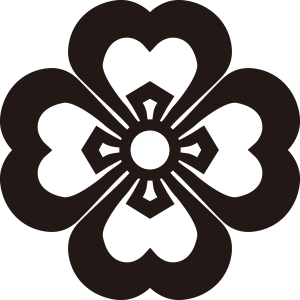 四条家田字草紋は、ハート型の4枚の葉をやや太い輪郭で十字形に集めて田字草を描く。明治以降の四条家の家紋。