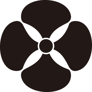 | 田字草紋は、植物の田字草(でんじそう)の葉をモチーフとした家紋。田字草は4枚の葉が「田」の文字のように見える植物で、別名は「花勝見(はなかつみ)」。また紋としては「浮き草」も含まれる。紋様としては平安時代にはすでに見られるもので、公家の四条家の独占紋として有名。 |