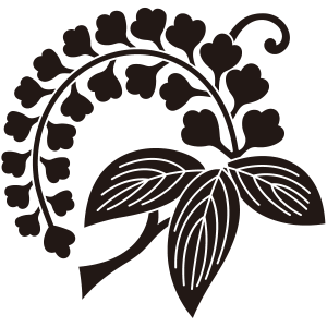 | 藤紋は、山野に自生するマメ科の蔓性落葉木本である藤の葉と花を紋章化した家紋。藤は寿命が長く、繁殖力が強いことでめでたい植物とされ、「万葉集」にも数多く詠まれて詠まれている。そのため、紋章としても好まれ、織物などにも盛んに描かれた。藤紋の使用家は、栄華を極めた藤原氏が圧倒的に多いが、その名声にあやかって藤紋を採用する家も増えたため、藤紋を使用しているからといって、必ずしも藤原氏族であるとは断定できない。 |