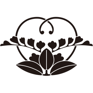 | 藤紋は、山野に自生するマメ科の蔓性落葉木本である藤の葉と花を紋章化した家紋。藤は寿命が長く、繁殖力が強いことでめでたい植物とされ、「万葉集」にも数多く詠まれて詠まれている。そのため、紋章としても好まれ、織物などにも盛んに描かれた。藤紋の使用家は、栄華を極めた藤原氏が圧倒的に多いが、その名声にあやかって藤紋を採用する家も増えたため、藤紋を使用しているからといって、必ずしも藤原氏族であるとは断定できない。 |