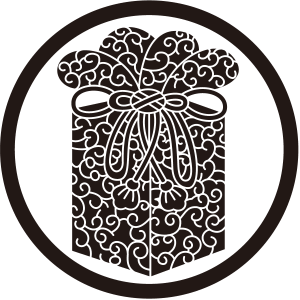 | 袋紋とは、日本古来の巾着袋を意匠化した家紋。家紋となったのは金嚢(砂金袋)。宝尽くし文様の1つであり、瑞祥的なめでたいものとして家紋となった。 |