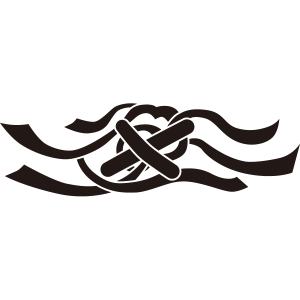 祇園守崩し紋(3)は、『祇園守』を横に広げて崩したような形に描く。筑後柳川藩立花氏の家紋のひとつ。