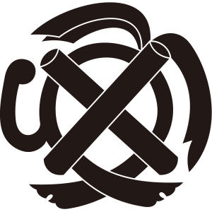 立花守紋は、『筒守』をイメージした2本の棒と房を交差させて描く。筑後三池藩立花氏の家紋で、『柳川守』とはやや形が異なる。宗家の福岡県大牟田市の三笠神社の神紋。