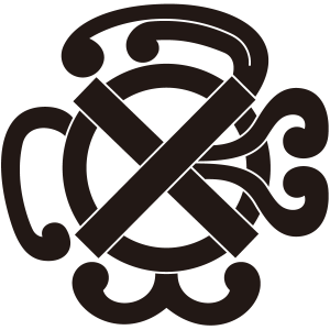 | 祇園守紋とは、京都八坂神社が配布するお守りのこと。単に「守り」とも呼ばれる。祇園とは「祇園給孤独園」「祇園精舎」の略で、その守護神は牛頭天王、疫病や災難から守る意味合いがあり信仰から家紋となった。中央で交差する巻物を十字架に見立てて、隠れキリシタンも使用した。 |