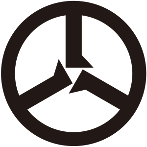 | 五徳紋とは、火鉢や囲炉裏の灰の中に据えて鍋や鎌を乗せる道具の「五徳」を紋章化とした家紋。もとは輪を上にして用いた竈子(くどこ)を、茶道具の炉に合せて上下逆さまに用いたことから「くどこ」を逆にして「ごとく」と呼ぶようになった。五徳の字は仏の六つの徳である「自在(じざい)」「熾盛(しせい)」「端厳(たんげん)」「名称(めいしょう)」「吉祥(きっしょう)」「尊貴(そんき)」の「六徳」にちなみ、天井から吊るす道具である「自在鉤(じざいかぎ)」を使わない道具ということから「自在」を除いた「五徳」の字が当てられたもの。兵法や儒教の五つの徳に通じることから家紋となった。 |
