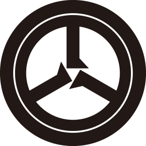 | 五徳紋とは、火鉢や囲炉裏の灰の中に据えて鍋や鎌を乗せる道具の「五徳」を紋章化とした家紋。もとは輪を上にして用いた竈子(くどこ)を、茶道具の炉に合せて上下逆さまに用いたことから「くどこ」を逆にして「ごとく」と呼ぶようになった。五徳の字は仏の六つの徳である「自在(じざい)」「熾盛(しせい)」「端厳(たんげん)」「名称(めいしょう)」「吉祥(きっしょう)」「尊貴(そんき)」の「六徳」にちなみ、天井から吊るす道具である「自在鉤(じざいかぎ)」を使わない道具ということから「自在」を除いた「五徳」の字が当てられたもの。兵法や儒教の五つの徳に通じることから家紋となった。 |