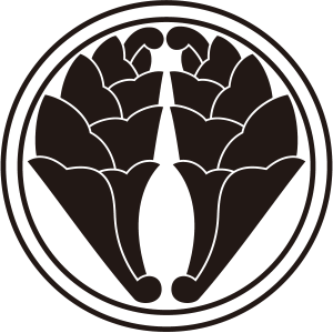 二重輪に抱き杏葉紋は、『抱き杏葉』を描いて、その周りを二重輪で囲う。