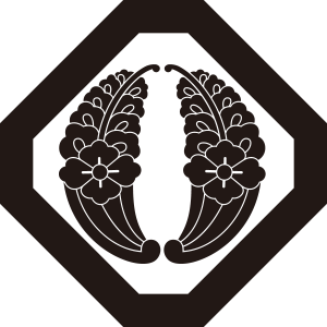| 名前 | 隅切り角に花菱付き抱き杏葉 | ||