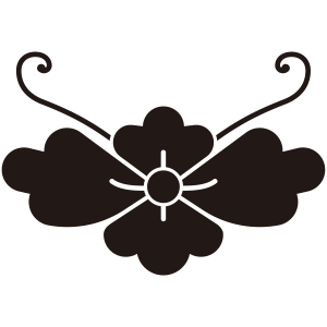 花菱胡蝶紋は、『花菱』に2本の蔓を添えて『胡蝶』に見立てて描く。