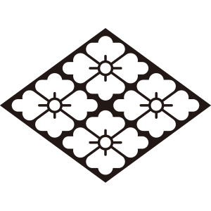 | 花菱紋とは、大陸から伝来した菱ということで「唐花菱」ともいわれる連続文様。正方形に描いたものを「花角」、花弁が5枚のものを「唐花」という。なお、花とつくが実在しない。 平安時代には有職文様として公家の装束や調度品にあしらわれるようになった。家紋の使用氏族が「菱紋」と近いことから、菱紋の変形紋と認識されている。 |