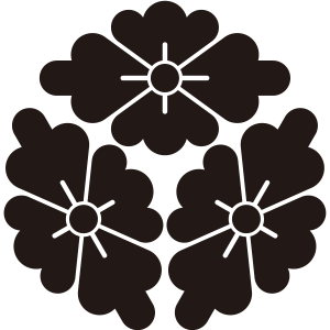 三つ花菱紋は、3つの『花菱』を端を寄せて三つ菱の形に描く。