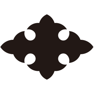朧花菱紋は、『花菱』の花弁を1つにまとめ、形を崩して花形の十字に描く。