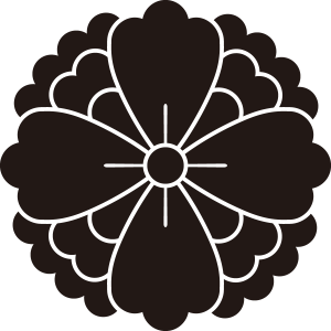 滋野井花角紋は、4枚の花弁の『花角』を20枚の花弁の模様で囲う。公家の滋野井家の家紋ということで『滋野井花角』と呼ばれる。