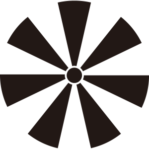 七つ日足紋とは、小さく描いた中心の輪(りん)から7本の光芒を広げて描く。