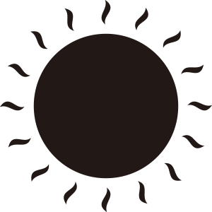 日輪紋は、太陽とその周りに16本の陽光を描いて、日輪を図案化した形に描く。