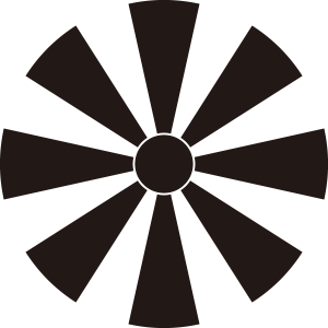 | 日・日足紋とは、日紋は丸で太陽を表した紋。日の丸。日足紋は太陽の周りに放射状の光線を描いた図案。どちらも太陽を信仰する日輪崇拝により紋章となったが、日紋(主に日の丸)が皇室との結びつきが強く、一般の家では使用が遠慮された。日足紋は、戦国時代に肥前の龍造寺氏が初めて使用したといわれ、北部九州の武家でよく使われている。旧海軍の軍艦旗も日足の文様。 |