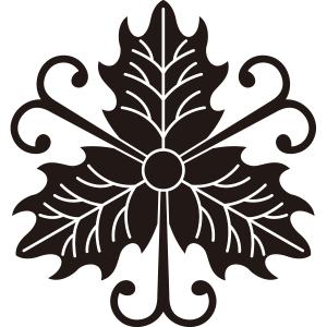 三つ蔓柊紋は、『三つ柊』の葉と葉の間から、先が左右に分かれた蔓を伸ばして描く。