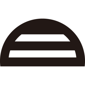 半二つ引両紋は、地と反対色に描いた半円の中に、色を抜くように二本の引両を描く。幕末土佐藩の吉田東洋の家紋。