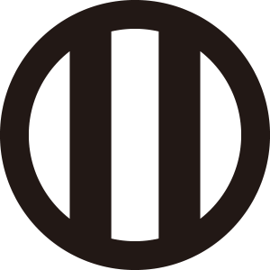 丸に竪二つ引き紋は、『竪二つ引き』を外側の丸の中に接して描く。旗本神保氏、旗本曾我氏の家紋の一つ。