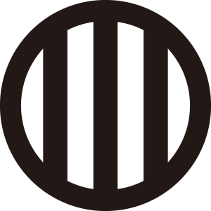丸に竪三つ引き紋は、『竪三つ引き』を外側の丸の中に接して描く。