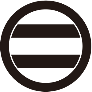 丸の内に二つ引き紋は、『二つ引き』を外側の丸に接しないように描く。肥前平戸藩松浦氏の替紋の一つ。