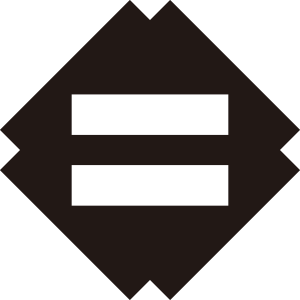 隅入り角地抜き二つ引き紋は、地と反対色の『二つ引き』を描く。