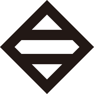 隅立て角に二つ引き紋は、通常より太い『二つ引き』を外側の『隅立て角』に接して描く。