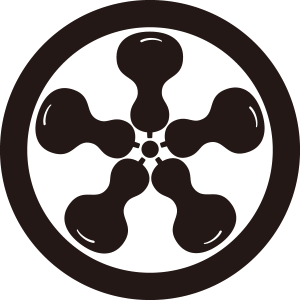 丸に五つ瓢紋は、『五つ瓢』を中央に描いて、その周りを通常の太さの丸で囲う。
