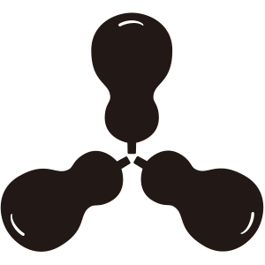 三つ寄せ瓢紋は、3つの瓢を頭を合せて寄せて等間隔に配置して描く。