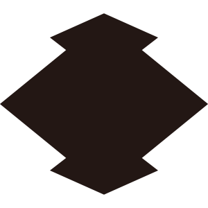 松皮菱(2)紋は、菱の上下に小さな菱を加えたように描く。松の樹皮をイメージして「松皮」と呼ばれる。