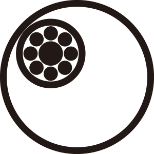 細輪に月抜き九曜紋は、『丸に九曜』を描いて、その周りを細い丸(細輪)で囲い、月に見立てて描く。
