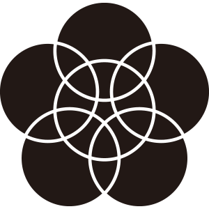 陰陽六つ星紋は、6つの星を互いに重なるように寄せて、さらに重なり合った境界線も描く。
