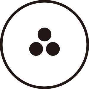糸輪に豆三つ星紋は、『三つ星』を通常の半分の大きさに描いて、その周りに糸のように細い円で囲う。
