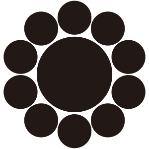 十一曜紋は、大きな星の周囲に円を描くように小さな星を10個並べて描く。